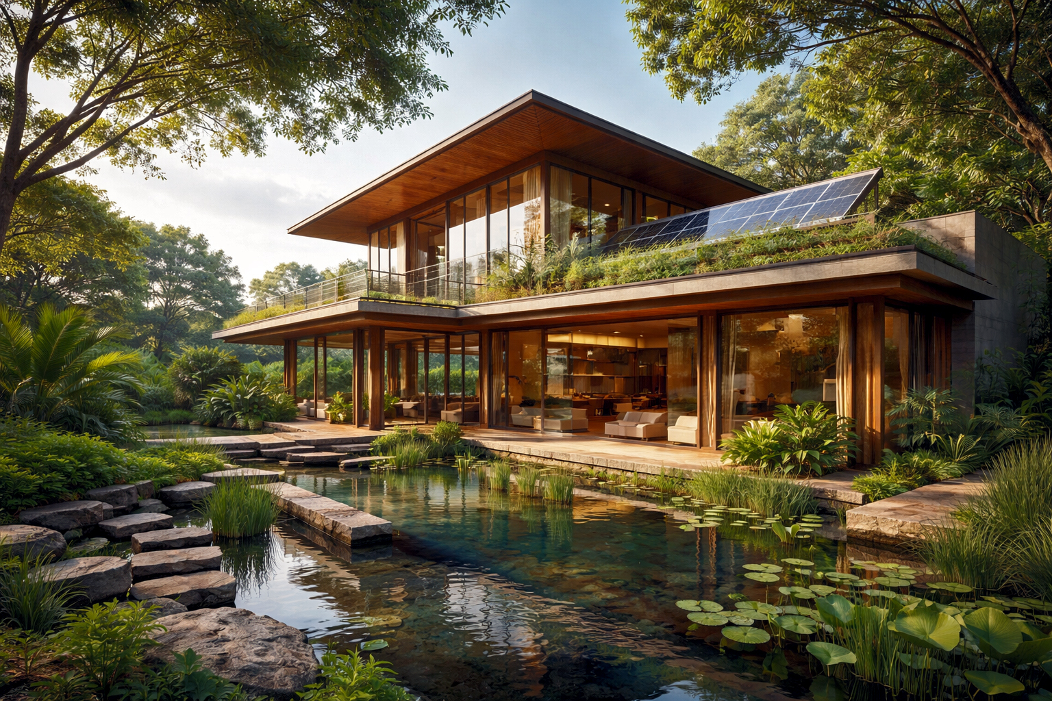 La arquitectura bioclimática no termina en los muros del edificio. El entorno inmediato —paisaje, cuerpos de agua, superficies permeables— influye directamente en el microclima. El manejo responsable del agua lluvia, la integración de vegetación nativa y la reducción de superficies duras mejoran el confort térmico y reducen impactos urbanos como las islas de calor.